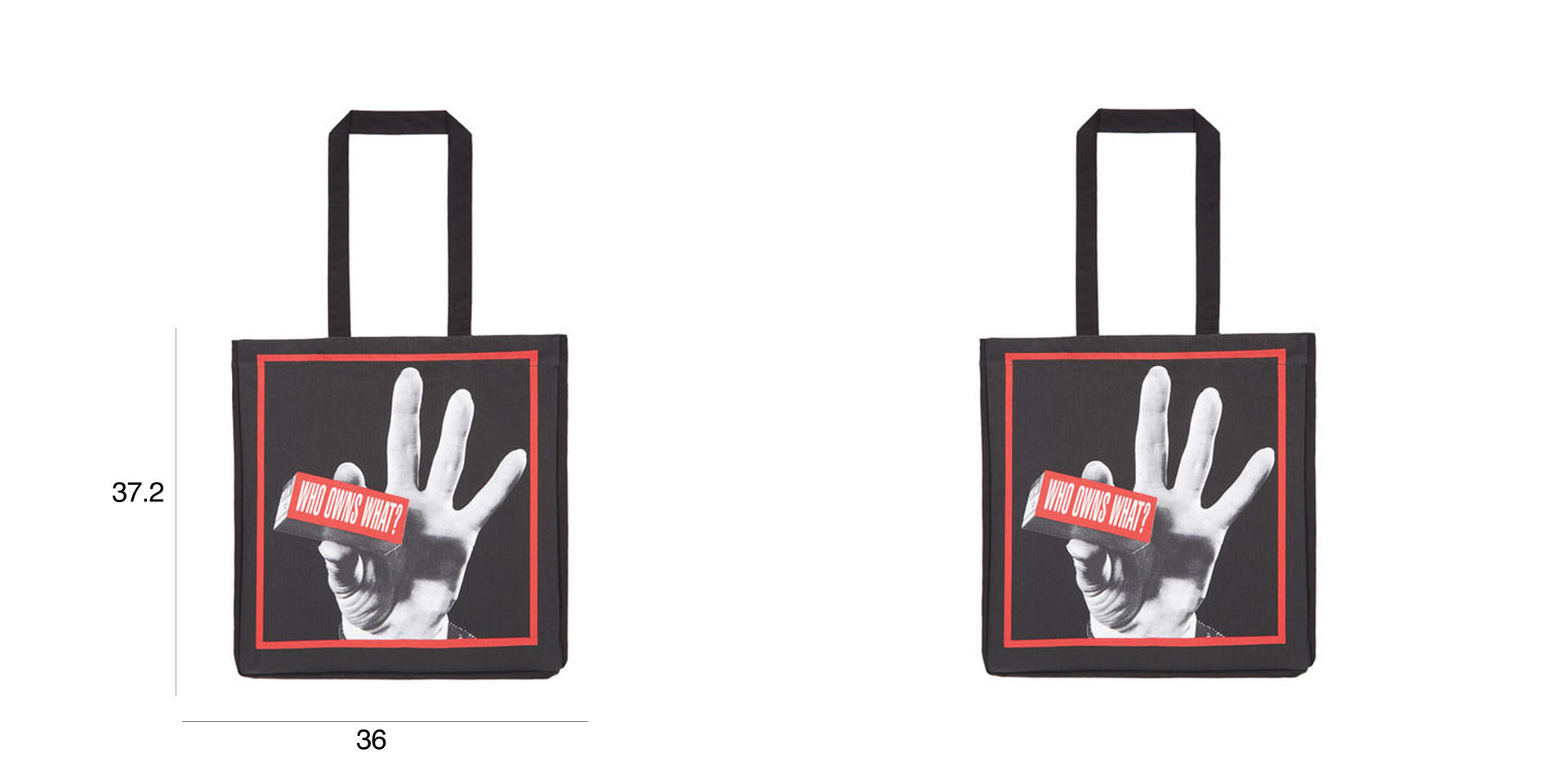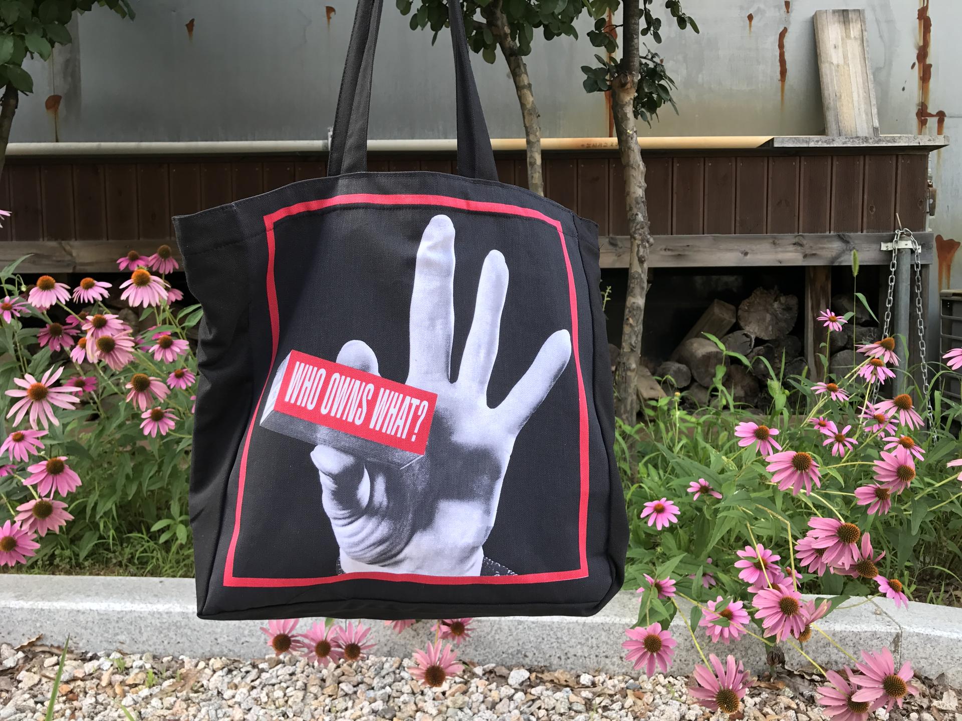 바바라 크로커 (Barbara Kruger)는 미국의 개념주의 예술가입니다. 그녀는 기존 예술에 대한 비판과 사회제도적 권력, 남성 지배 구조의 사회적 편견에 저항하였습니다. 크루 커는 새로운 사진을 찍는 것보다는 기존의 매거진이나 브로슈어의 이미지를 사용해 사진과 텍스트를 결합하는 독특한 예술 형식을 사용하여 작업하였습니다. 이러한 바바라 크루 커의 작품은 슈프림에도 영향을 미쳐 슈프림의 박스 로고로 거리문화에도 널리 사용되고 있습니다. 바바라 크로커(Barbara Kruger) Who Owns What? 에코백입니다. 그녀의 테이트 소장 작품인 Who Owns What? 양면에 인쇄되어 있습니다. 빨간색 박스와 함께 안감이 빨간색으로 처리되어 블랙의 가방면과 대조를 이루는 감각적인 에코백입니다. 옆면과 밑면이 있는 많은 수납이 가능한 에코백이며 안쪽에는 지퍼로 된 주머니가 있어 작은 소지품을 넣기에 편리하게 구성되어 있습니다.