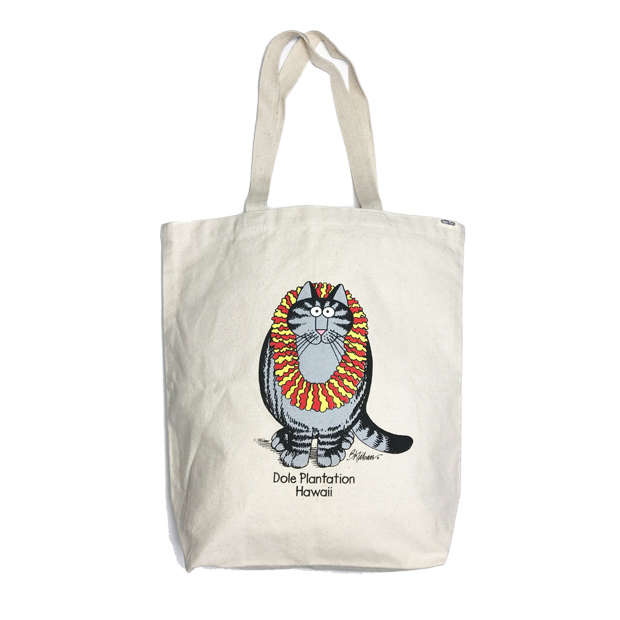하와이의 Dole 파인애플 농장(dole plantation)은 '파인애플의 왕'이라고 불리는 제임스 드러먼드 돌(James Drummond Dole)이 1900년에 첫 번째 파인애플 농장을 세웠던 곳입니다. 하와이에 방문하면 한 번쯤은 방문하는 관광명소입니다. 돌(Dole) 회사의 역사와 파인애플 농장을 설명해주는 투어 프로그램도 준비되어 있습니다. 그중에서도 파인애플 아이스크림을 판매하고 있는데 아이스크림이 맛있어서 꼭 먹어보는 것을 추천합니다. 그 외 기념품 상점에는 파인애플에 관련된 상품과 다양한 제품을 판매 중입니다. 그중에서 하와이 크레이지 셔츠와의 협업 제품인 고양이 클라반켓(Kliban cat)이 그려져 있는 에코 백이 꽤 귀엽습니다. 100% 리 사이클 코튼으로 튼튼하고 두꺼운 소재의 에코백입니다.