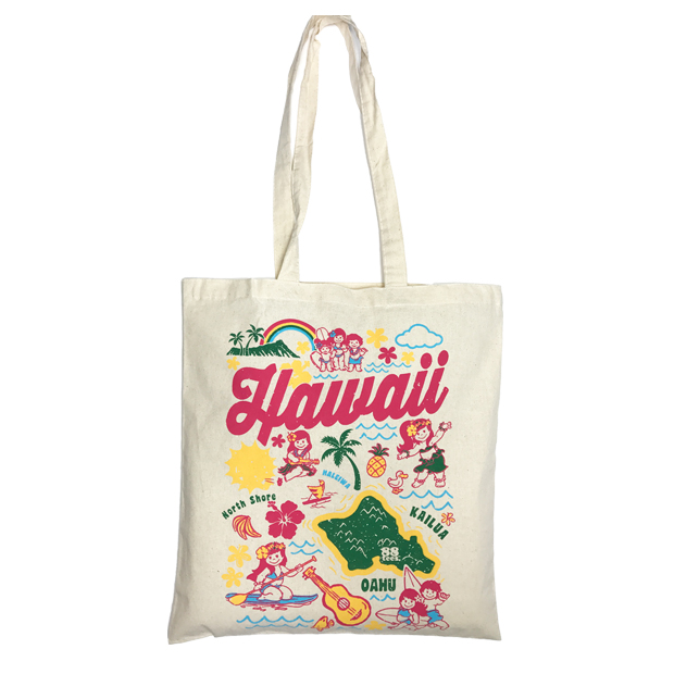 하와이 88tee는 1988 년에 모두가 입을 수 있는 다양한 스타일이라는 모토로 시작되었습니다. 88tee의 캐릭터인 yaya 알로하 정신과 라이프 스타일을 나타내주는 캐릭터입니다. 핑크색의 yaya와 하와이 오아후의 대표적인 지역 이름이 프린트되어 있습니다. 소재는 코튼 100%이며 앞면의 프린트가 뒷면에 비칠 정도의 두께감을 갖고 있는 핑크색의 컬러가 사랑스러운 에코백입니다.