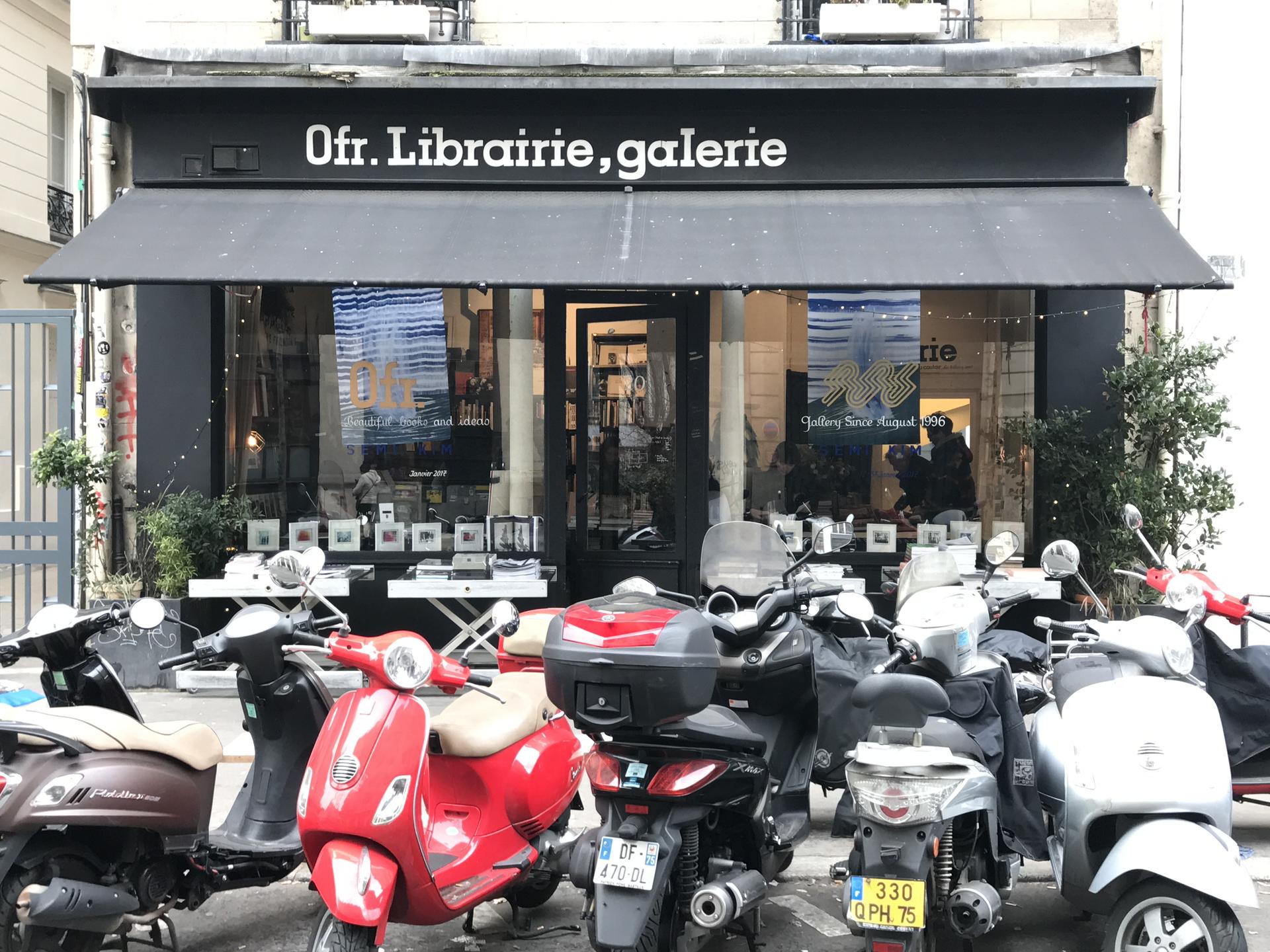 | 오에프알(ofr) 서점 파리프랑스 파리, 마레 지구는 예술과 문화 중심지이자 작은 상점과 카페들이 골목마다 자리 잡고 있다. ‘핫’하다는 레스토랑, 카페, 서점 중 많은 곳이 마레 지구에 위치해 있다. Ofr. 은 마레 지구에 위치해 있는 소규모 책방이다. 이곳에는 많은 매거진과 아트북, 패션, 인테리어, 사진, 키즈, 포스터, 패브릭 제품 등 다양한 예술 분야의 책과 함께 안쪽에 있는 공간에서는 전시도 함께 열리고 있다. |