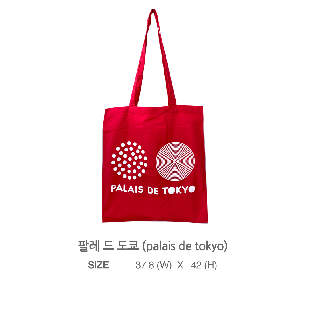 팔레 드 도쿄(palais de tokyo)의 에코백입니다. 빨강색원단에 팔레 드 도쿄 이름이 흰색으로 앞뒤로 동일한 디자인이 프린트되어있습니다. 원단의 두께는 비침이 없으며 강렬한 빨강색이 돋보이는 코튼 소재의 가방입니다.