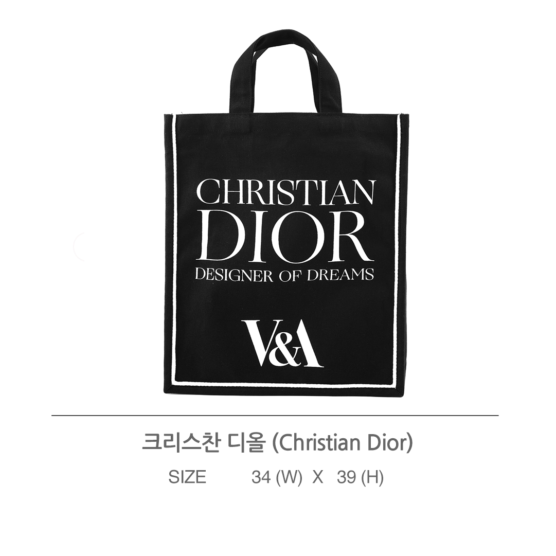 크리스찬 디올의 전시 기념 한정으로 제작된 가방입니다. 블랙 컬러 원단에 흰색으로 전시회 타이틀이 프린트되어습니다. 가방의 두꺼운 편이며 밑면과 옆면이 있는 많은 소지품을 수납할 수 있는 가방입니다.