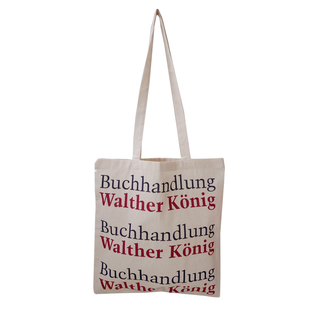 베를린의 발터 쾨니히 (walther könig) 서점의 에코백입니다. 독일어로 서점이라는 buchhan dlung 단어와 발터 괴니 이 서점의 이름이 네이비와 레드로 번갈아 프린트되어 있는 디자인입니다. 흰색이 아닌 원단의 컬러는 붉은 기가 있는 아이보리 컬러이며 가방의 두께는 손을 넣었을 때 약간의 비침이 있는 가방입니다.