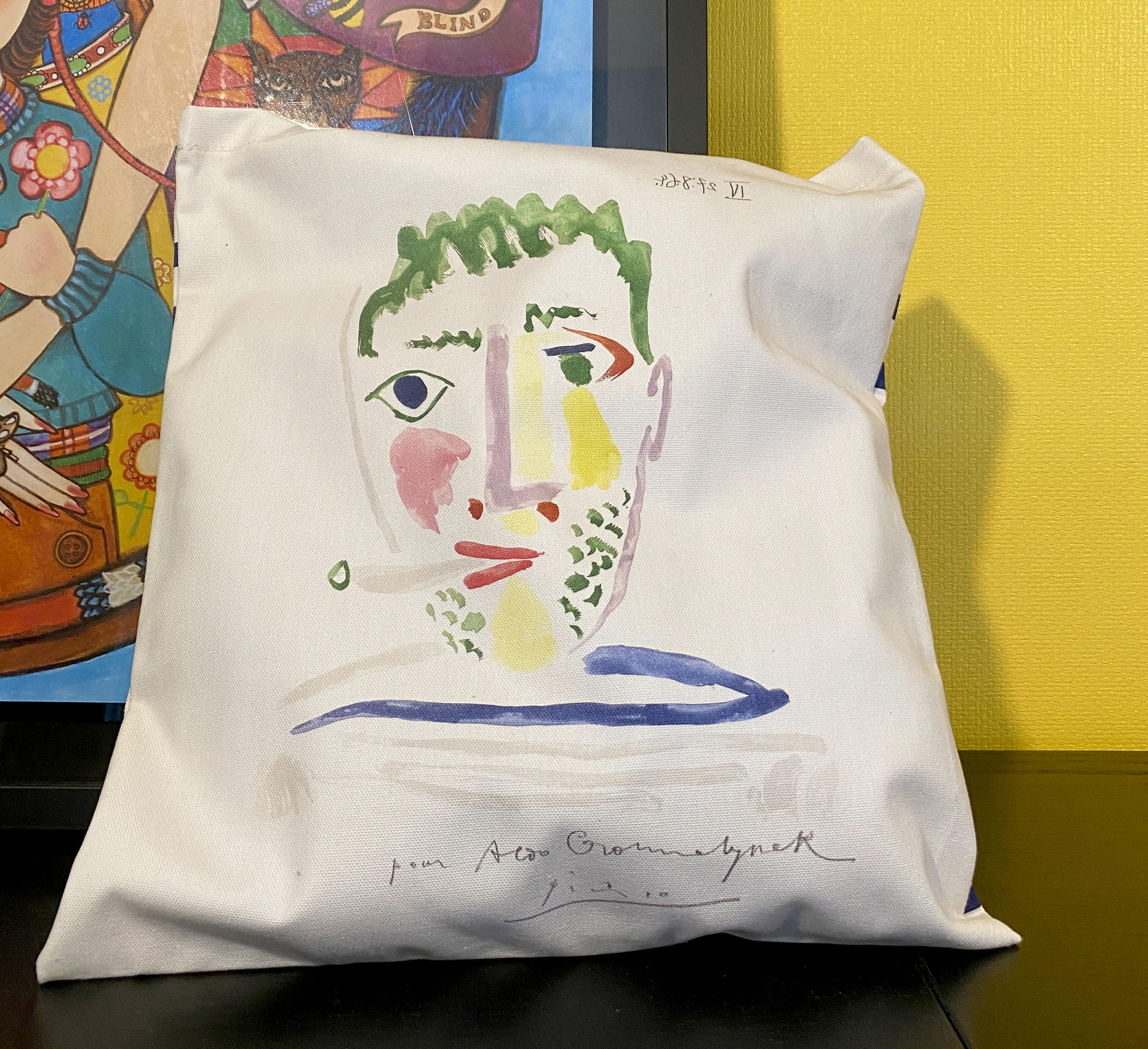 가방에 프린트 되어 있는 작품 제목은 Smoker with Striped Jersey 로 1964년 8월 27일 제작 되었으며 파리에있는 피카소 미술관에 소장되어 있습니다.