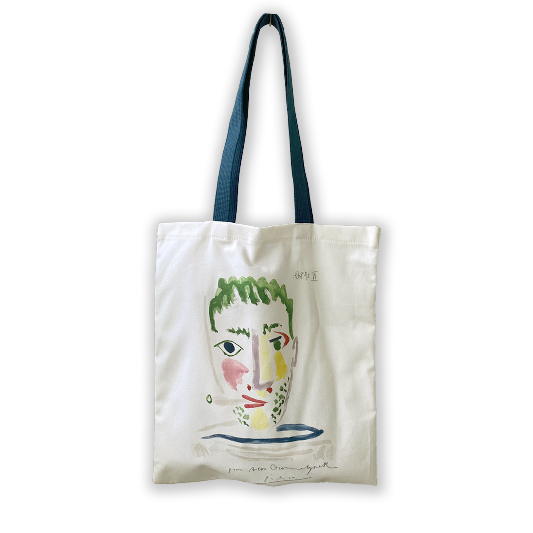 아이보리색의 가방으로 앞면과 뒷면이 다른 디자인입니다. 앞면에는 피카소의 작품이 프린트 되어있으며 뒷면은 피카소가 즐겨입었던 스트라이프무늬가 프린트 되어있는 디자인입니다. 앞면과 뒷면이 다른 디자인으로 하나의 가방으로 2개의 가방을 구매한 느낌을 느껴보세요. ^^ (라이센스 계약되어 제작된 제품입니다.)