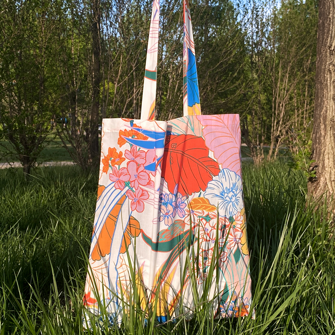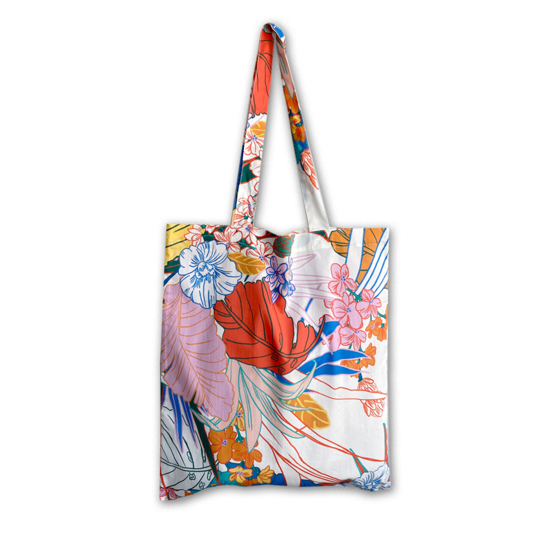 Nature vibe 다양한 식물들이 함께 모여있어 마치 가방에 꽃을 담은 것 같은 느낌을 주는 가방입니다. 가방의 앞면과 뒷면은 동일한 패턴이며 원단을 잘라만든 제품으로 사진과 패턴이 동일하지 않을 수 있어요.