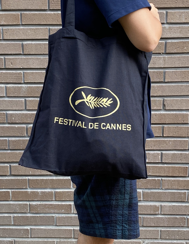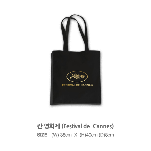 2020년 개최 취소와 올해2개월이 미뤄진 7월에 개최된 74회 칸 영화제 공식 굿즈 에코백입니다.. 굿즈는 검은색원단에 황금색으로 Festival de Cannes 가 프린트되어 있으며 뒷면은 무지인 가방입니다. 가방의 두께는 손을 넣었을 때 손이 비치는지 않는 두께로 두꺼운 가방입니다.