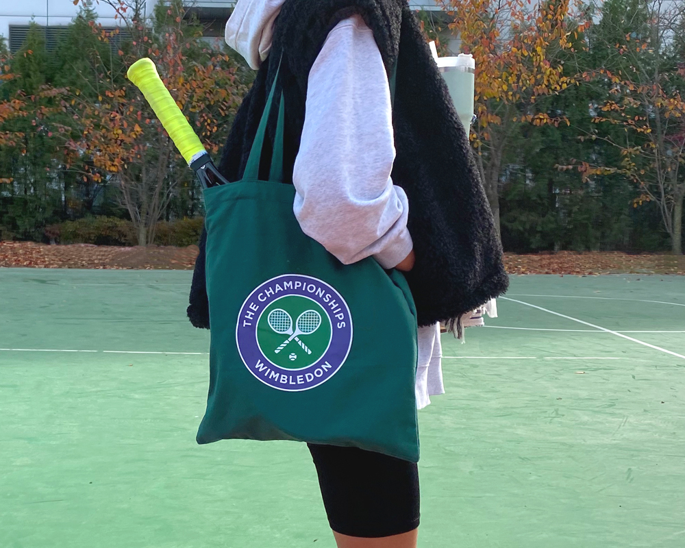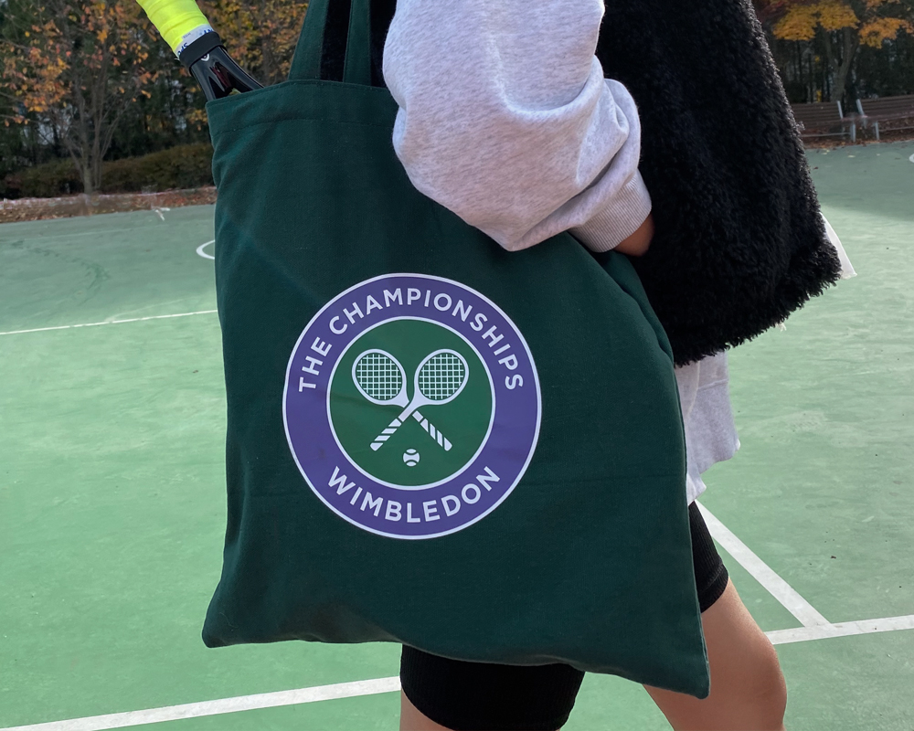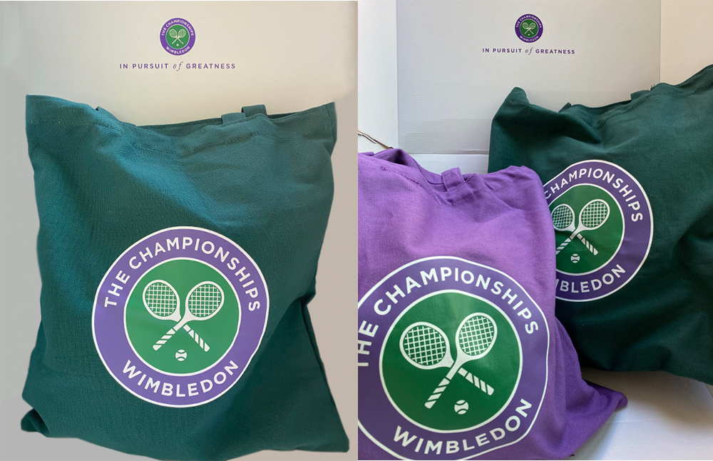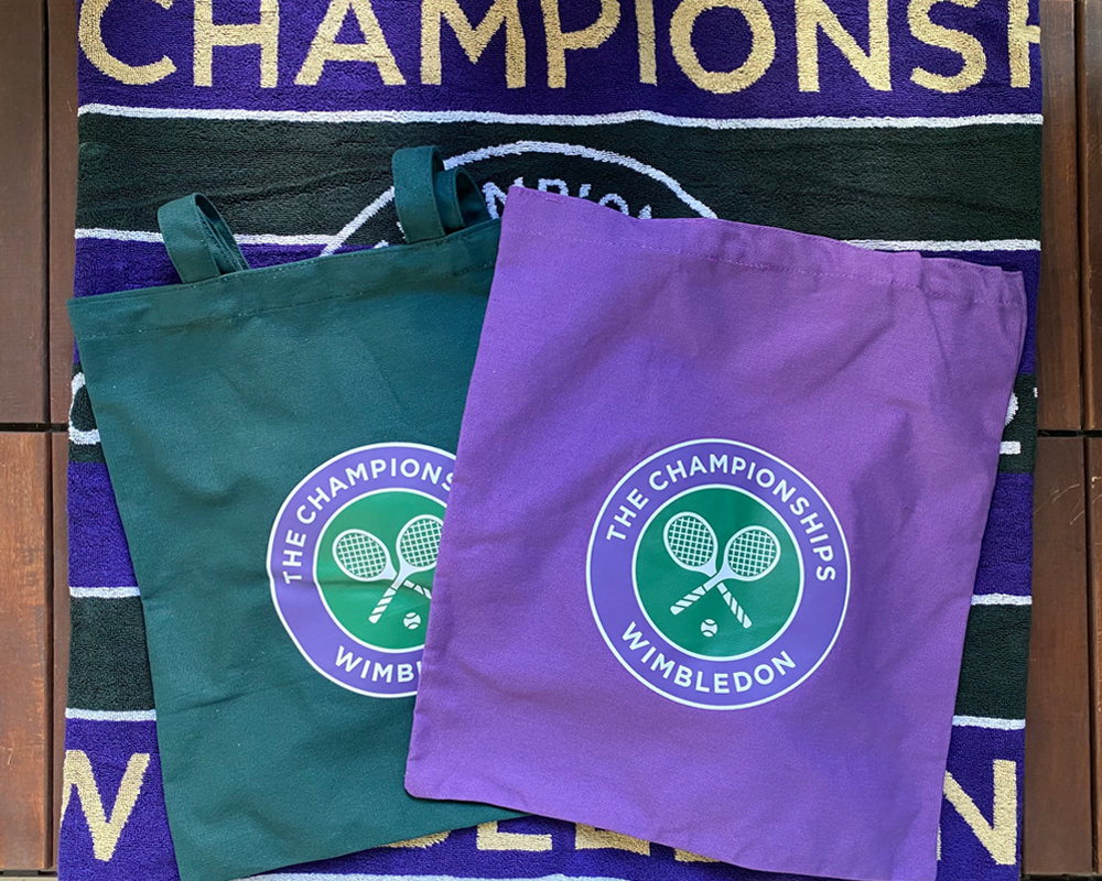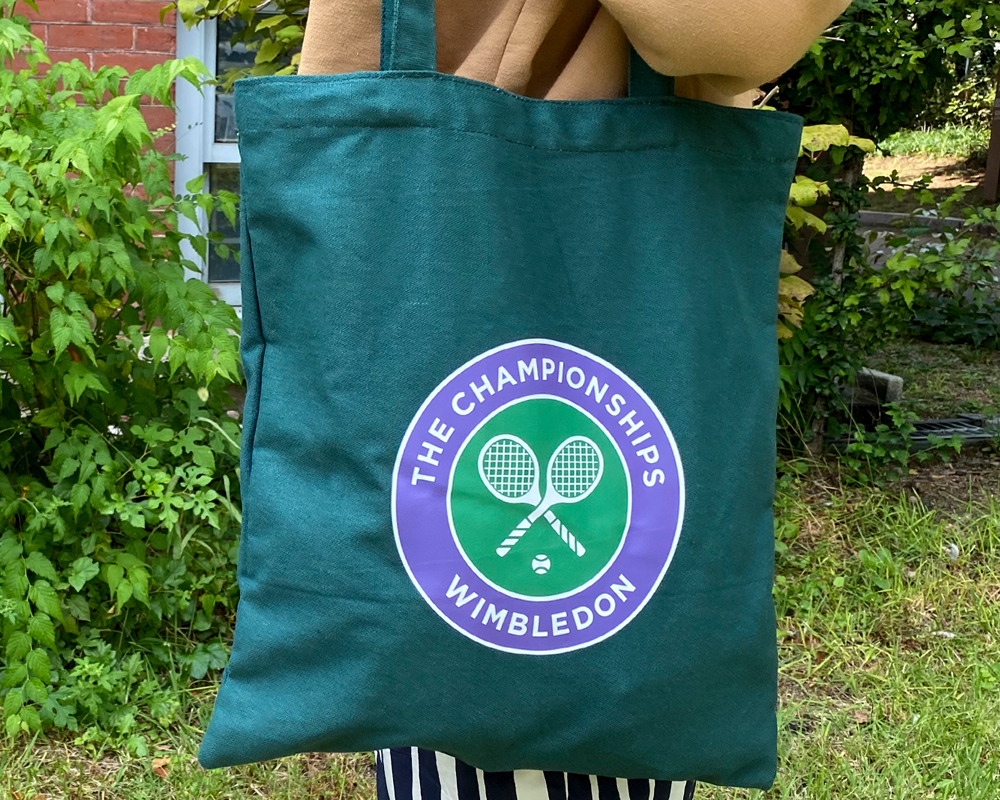 윔블던 대회의 공식 로고가 프린트된 가방입니다. 윔블던의 상징컬러인 보라색과 녹색의 로고가 앞면만 프린트 되어 있는 가방입니다. 비침이 없고 흐물거리지 않는 두꺼운 가방입니다. (라이센스 계약되어 제작된 제품입니다.)
