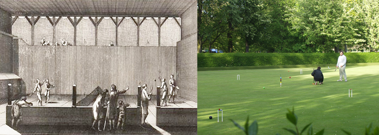 *크로케(croquet)는 직사각형의 잔디밭에서 망치 형태의 도구로 공을 쳐서 6개의 후프(기둥문)를 통과시키는 게임이다.