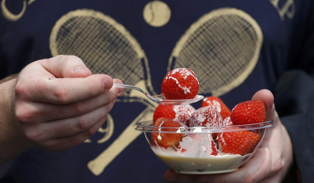 딸기는 윔블던의 특산품이며 1877년 대회가 시작하면서부터 140년이 넘게 딸기와 크림을 곁들여 먹었다고 해요. 윔블던 대회 기간 소비되는 딸기는 무려 28t, 크림은 7000∼8000ℓ 소비된다고 하니 어마어마하네요.