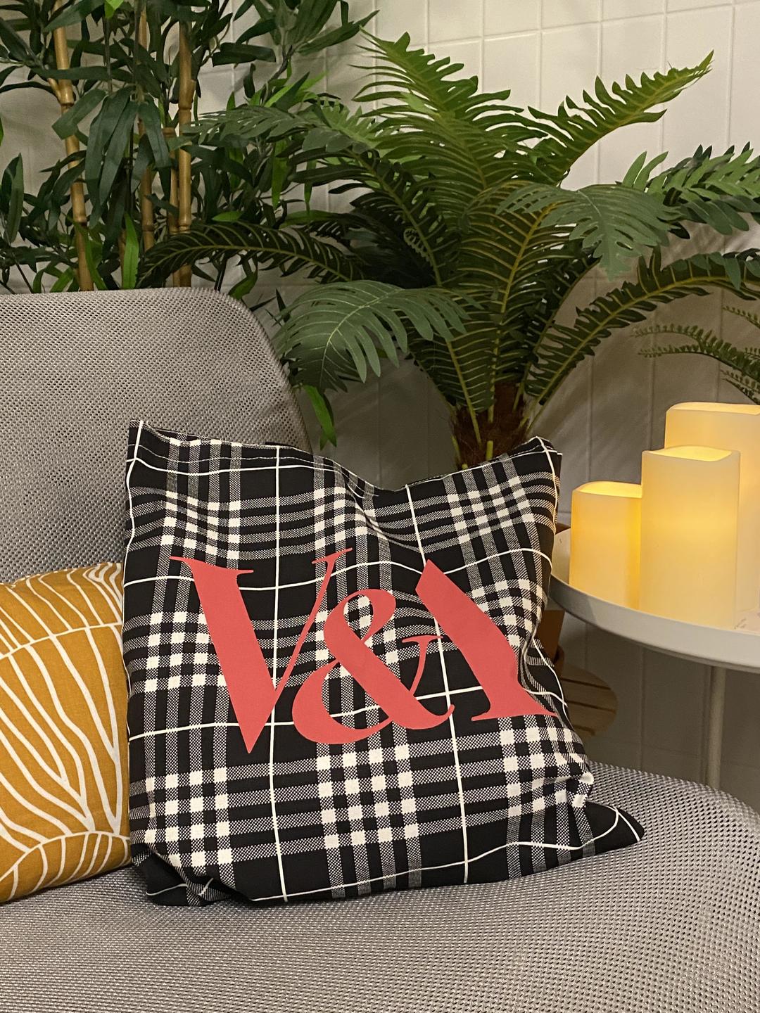V&A의 화이트와 블랙의 타탄무늬(tartan) 가방입니다. 앞쪽에는 검은색과 대조적인 빨강색으로 V&A 프린트되어 있습니다. 비침이 없고 두꺼운 소재로 겨울에도 사용하기 좋은 가방입니다.